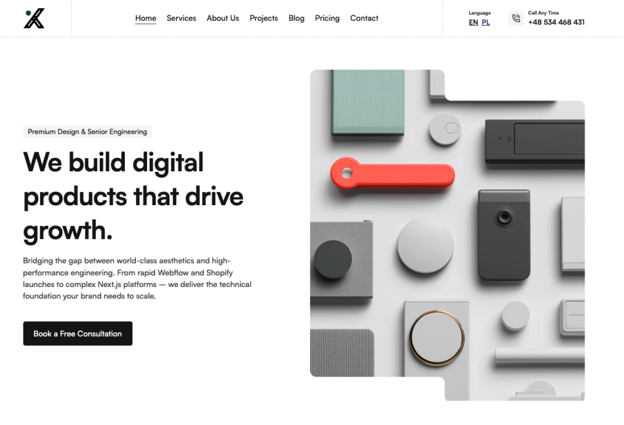 Our previous website was built on Webflow. While it served us during the boutique agency phase, we eventually hit a performance wall. The "No-Code" architecture generated bloated code that dragged down our Core Web Vitals, negatively affecting SEO and user experience.
